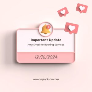 Starting from December 16, 2024, please note that our booking email address has changed. All future service requests and inquiries should be sent to the new email address: book@taplookspa.com Please update your contact information accordingly to ensure smooth communication. We apologize for any inconvenience this may cause and appreciate your understanding. Thank you for choosing…